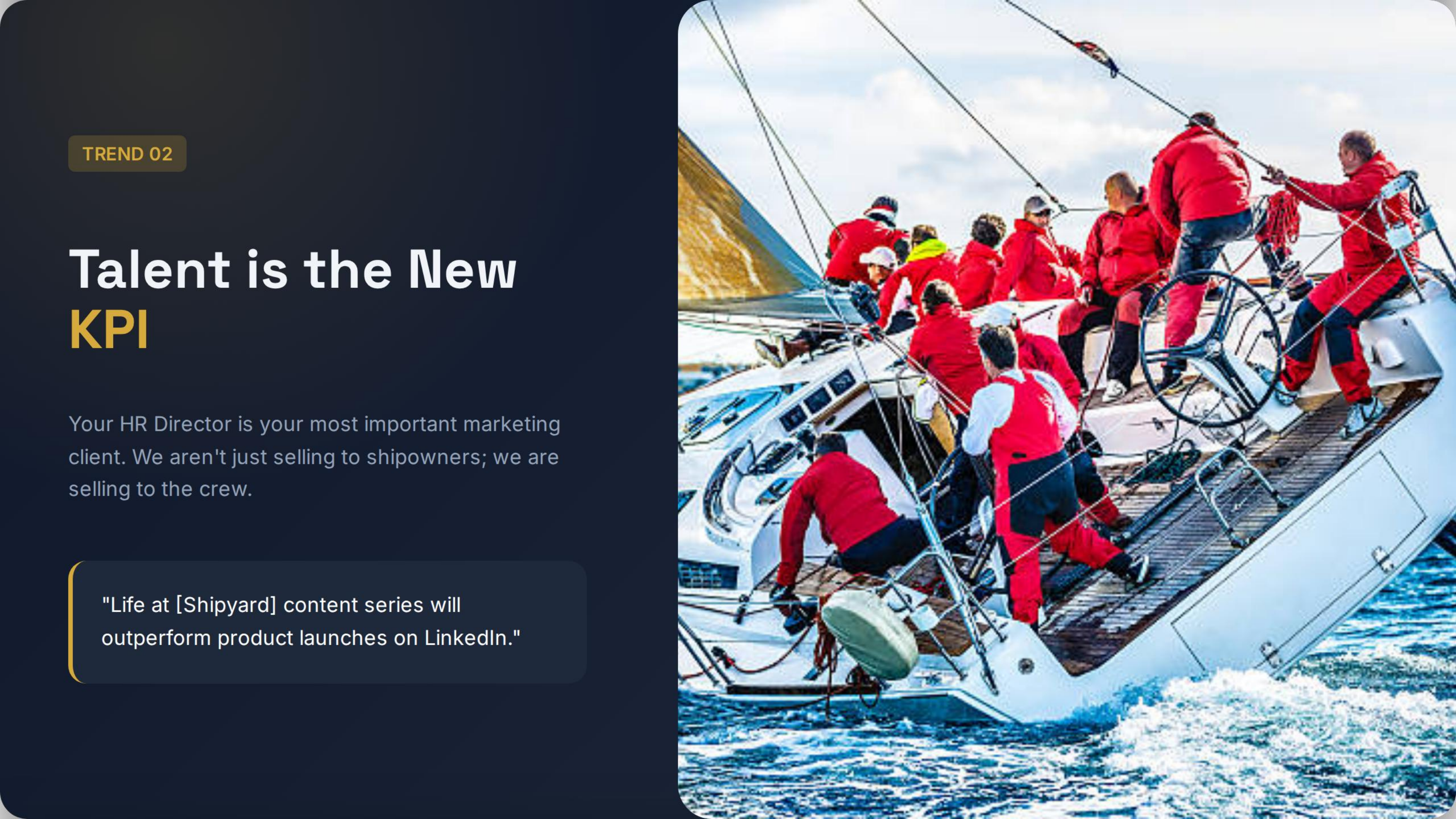 The second definitive trend for 2026 is the elevation of employer branding from an HR support function to a critical marketing Key Performance Indicator (KPI). The maritime industry is facing a severe and structural talent shortage that threatens operational continuity. In a market where assets (ships) are increasingly standardized or regulated, the quality and availability of the human element have become the primary competitive differentiator.
